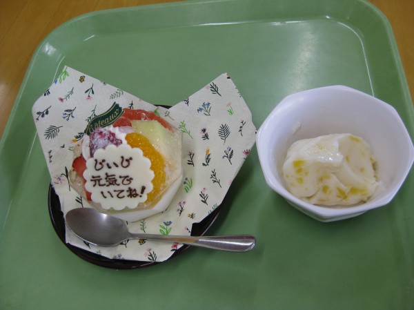 今日は9/18 敬老の日です。ご家族様からお祝いにケーキをお持ちくださいました。
