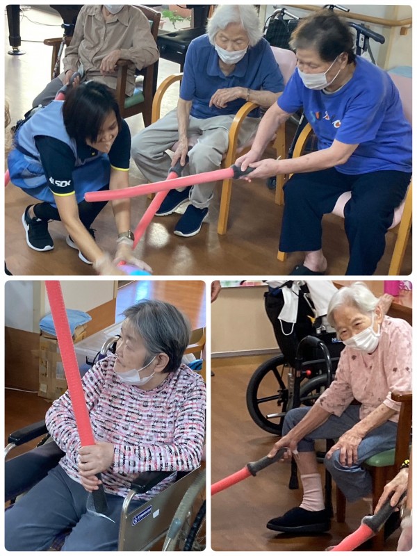敬老の日に、ご利用者様と棒サッカーでenjoy!