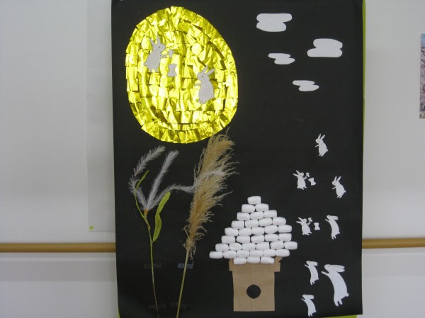 月やお団子を貼っていきウサギを貼っていきました( ^ω^)・・・