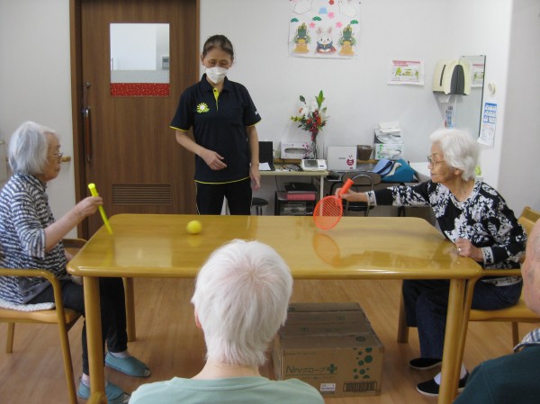 真剣に参加されています。始めは難しいなあ~ と話されていましたが慣れてくるとラリーが続いてくるようになりました。