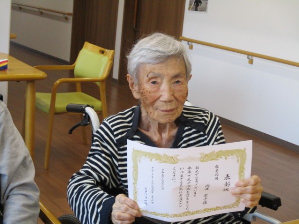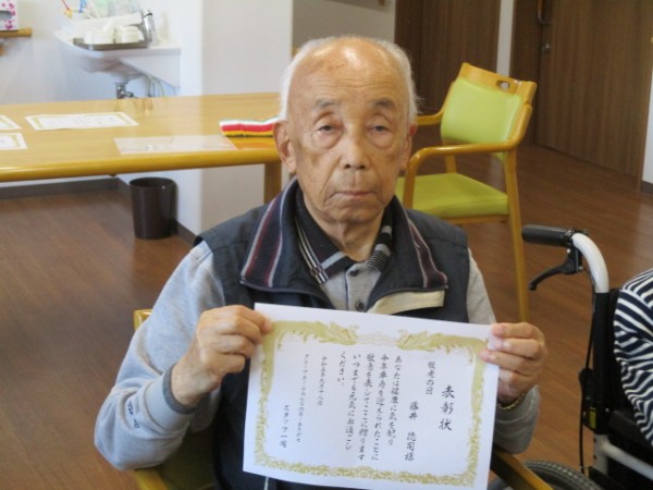お一人お一人に感謝状をお渡ししてお祝いをしました。「嬉しいわ! ありがとう!」と喜ばれていました( ^)o(^ )