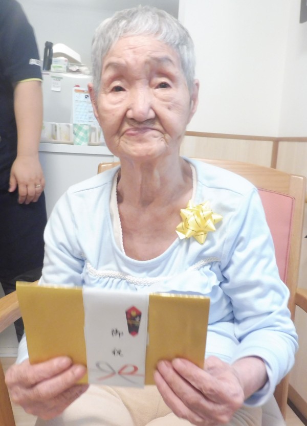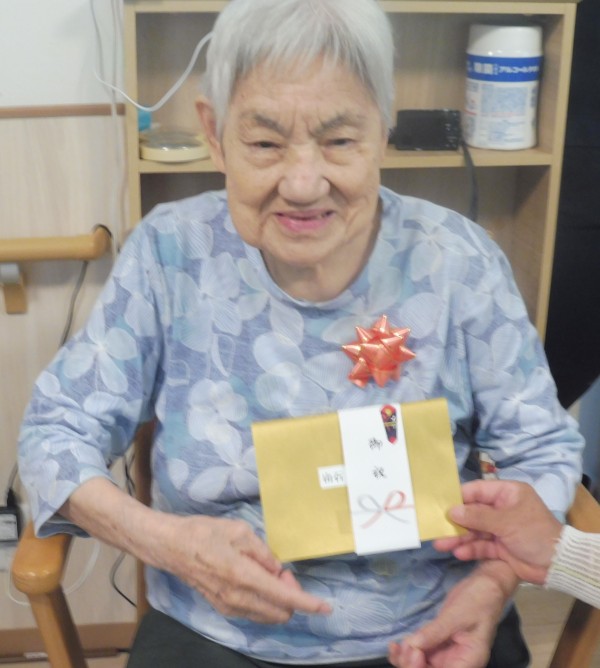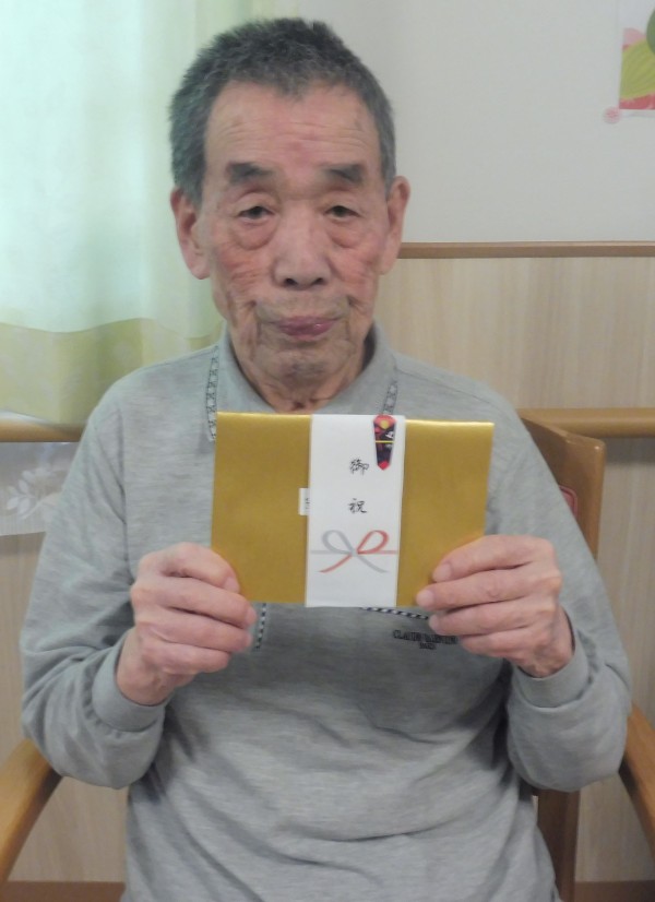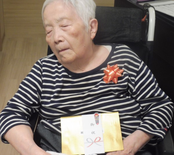 そして最後に職員による長寿の祝いの所以や由来の話のあとに、お一人お一人に