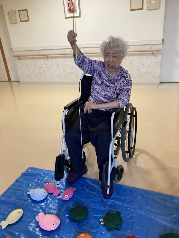 実際にお連れするわけにも行かないので施設でできる魚釣りを楽しんでいただきました。