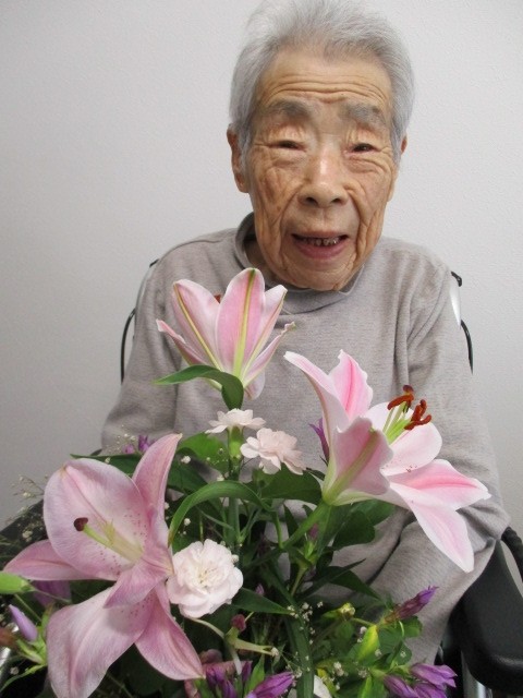 敬老の日に、ご家族様から届いたお花をF様とても喜ばれていました(#^^#)