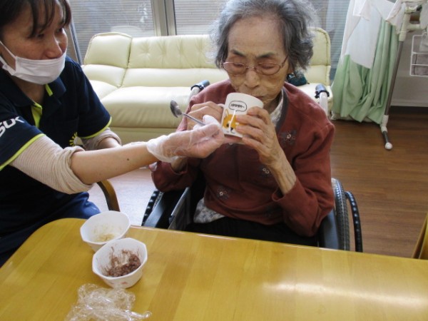 こんにちは! グループホームみんなの家・あきがせの介護ブログです! よろしくお願いいたします! 今日は2階でおはぎ作りを行いました。そのご様子をお知らせいたします!