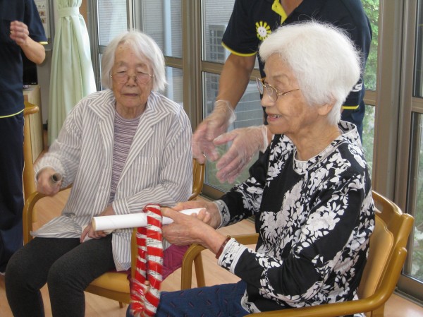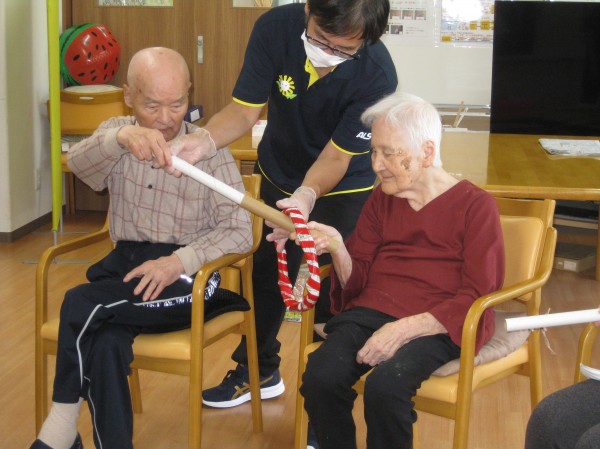 ペアになって棒と棒を合わせて輪を繋げていく遊びです。難しかったが慣れてくるとすぐに繋げていくことができました(*^_^*)