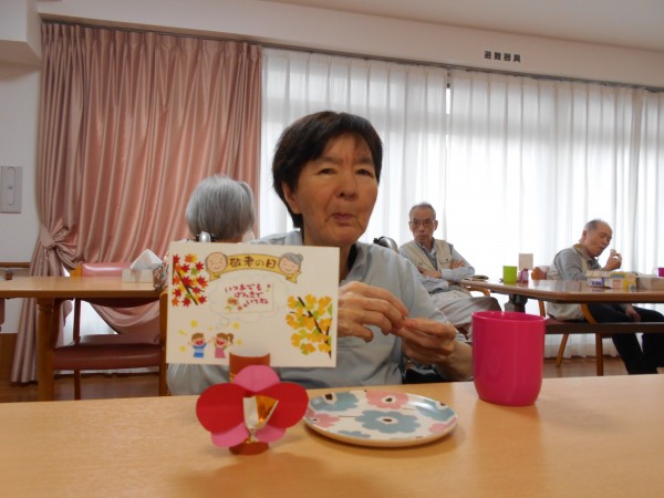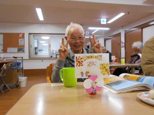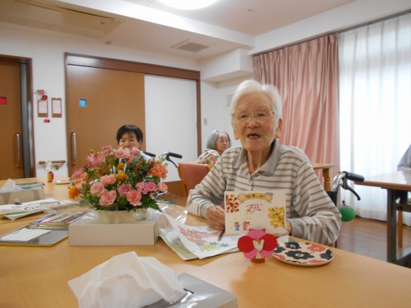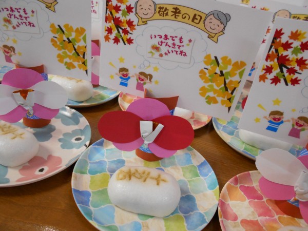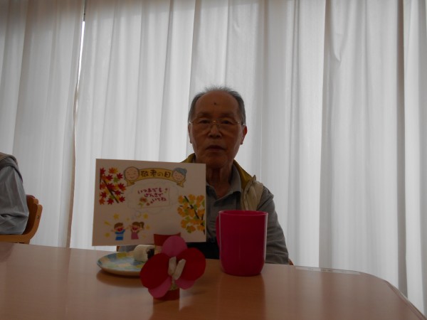 2階の入居者様と一緒に敬老の日のお祝いをさせていただきました。