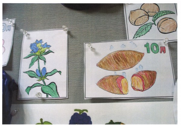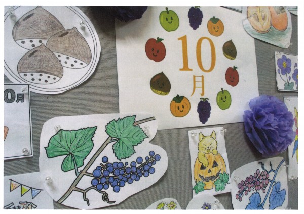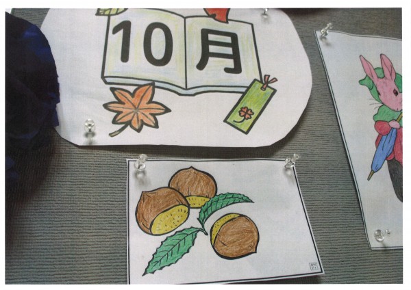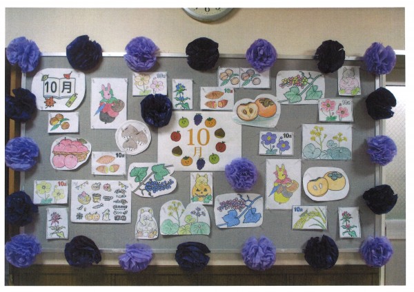 先日レクリエーションの時間に皆様に塗っていただいた塗り絵を壁に飾りました。お花も色が変わり、すっかり秋らしくなりました。皆様の力作、とてもきれいですね✨