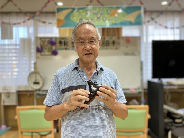 市販の物はプラスチックの物が増えているとの事ですが、陶器のオカリナを間近で触れさせて頂き、「いいの?」と怖々ながらも持ってみると「重たい〜」とその重量を実感した次第です(๑˃̵ᴗ˂̵)