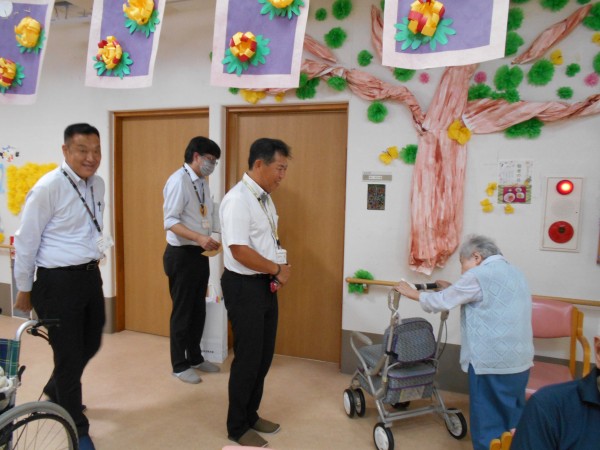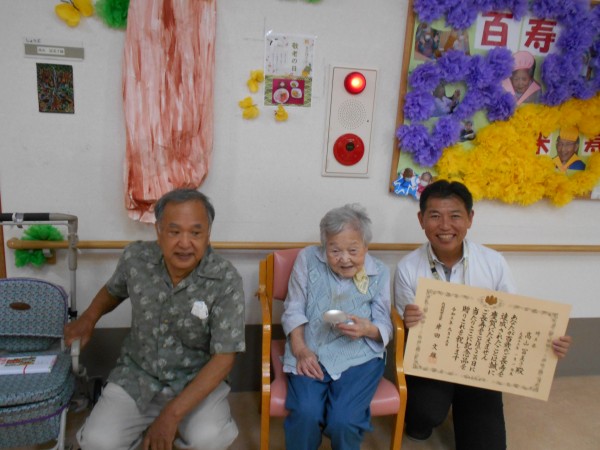 市役所から市長さんが来られ、ご家族様と一緒に百寿のお祝いをして下さいました。