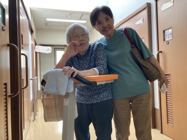 丁度お茶の時間に二人でお部屋からみんなのいるフロアーへ行くところです(^^)/