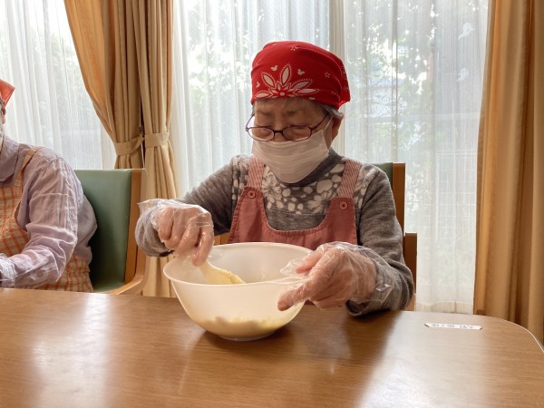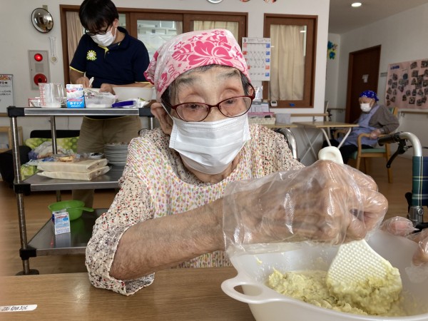「おやつレク!さつま芋ンブランケーキを作りました」~グループホームみんなの家・横浜今宿の介護ブログ~