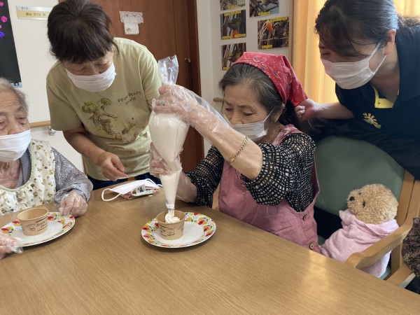 1階と2階のご利用者様合同での「おやつレク」を行いました!