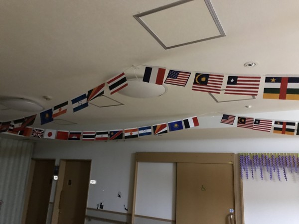 確認、天井の国旗飾り付けなど着々と準備を進めています‼