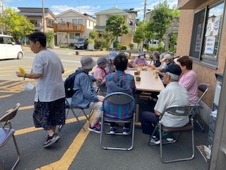 2023.10.2㈪ラジオ体操後にせせらぎ前の屋外スペースでサロンを行いました。