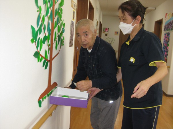 壁に貼ってある葉っぱ????を剥がして下さっています( ^ω^)・・・