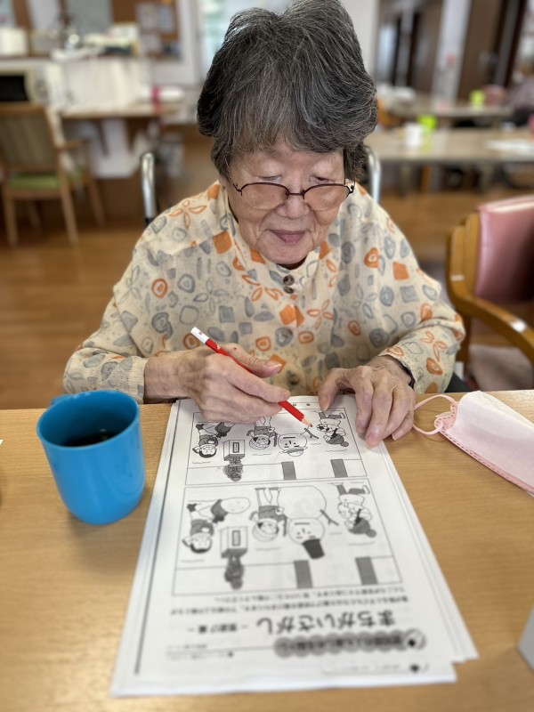 日差しが差し込む明るいフロアでは、スタッフと一緒に体操や工作レクなども賑やかに行っております。