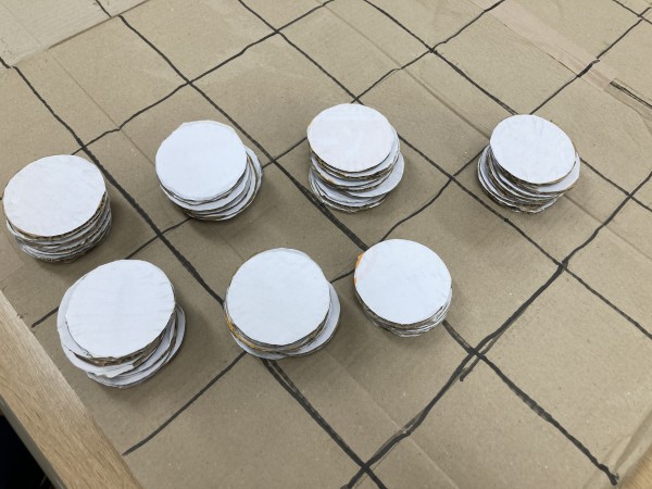 本日のオセロゲーム会場ー。白黒とチームに分かれていざ勝負!
