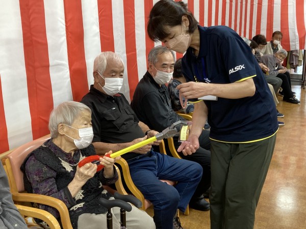 お菓子が吊るしてあるので、マジックハンドで取って下さいネ!