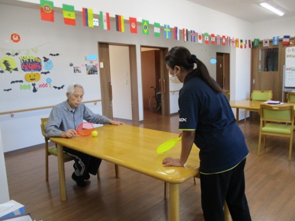 テーブルテニスのご様子です( ^ω^)・・・ 楽しそうにスタッフと遊んでおられます(*^。^*)