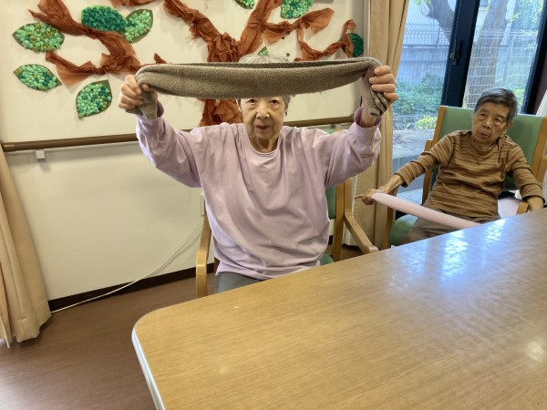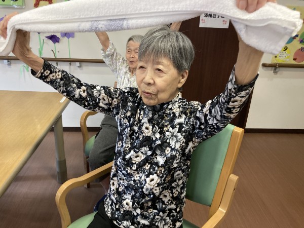 タオルを使った体操を行いましたが、真剣な表情で参加されていますよね。
