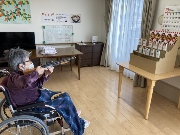 ★☆[秋祭り]射的輪投げレクリエーション高得点目指し③階2023年✨ 『みんなの家-三橋6丁目-介護ブログ』☆★