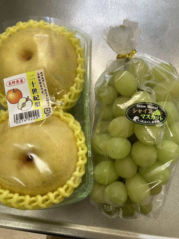 今回のフルーツは葡萄と梨でございます。柿も用意しましたがもう少し熟れてからとの事で次回に回しました。