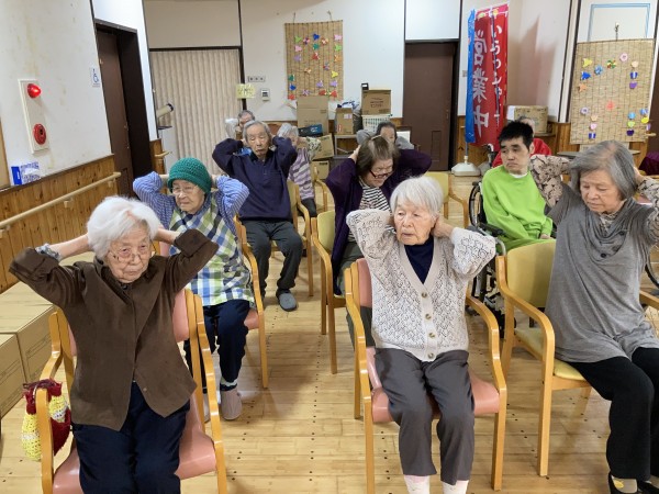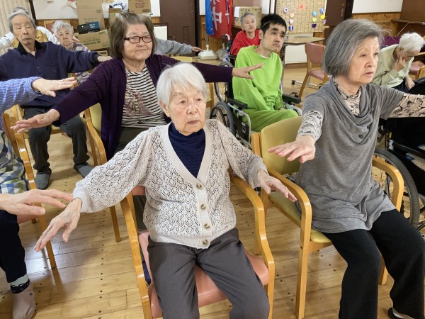 画面の先生の声に合わせ、ゆっくりと息を吸ったり吐いたり、深い呼吸をしながら手足を動かします。