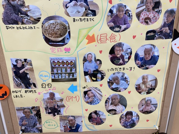 その時の様子を大きい模造紙1枚にご利用者様の写真を貼り