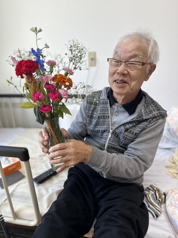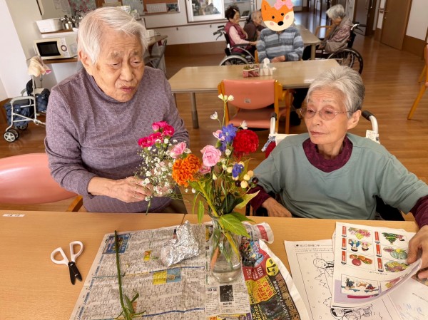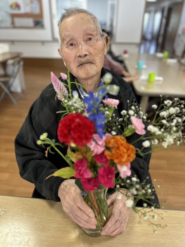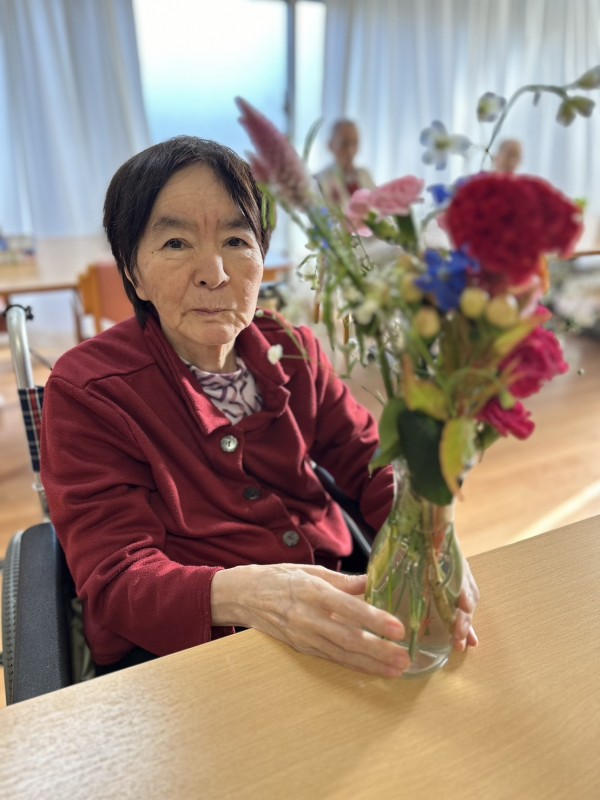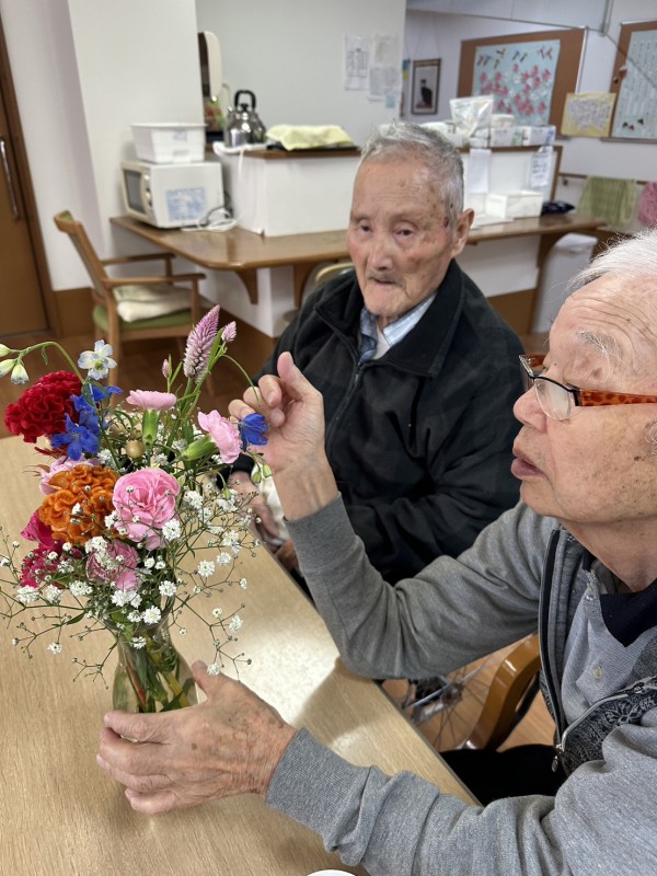 二階フロアでは、持参したお花をご入居者様に生けていただきました♬