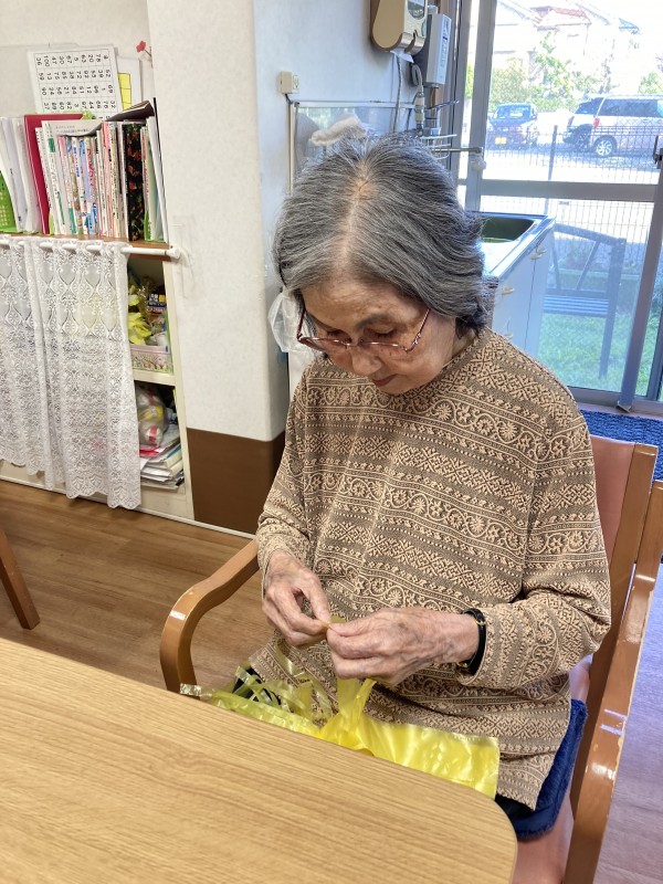 ビニール紐を手で裂いて