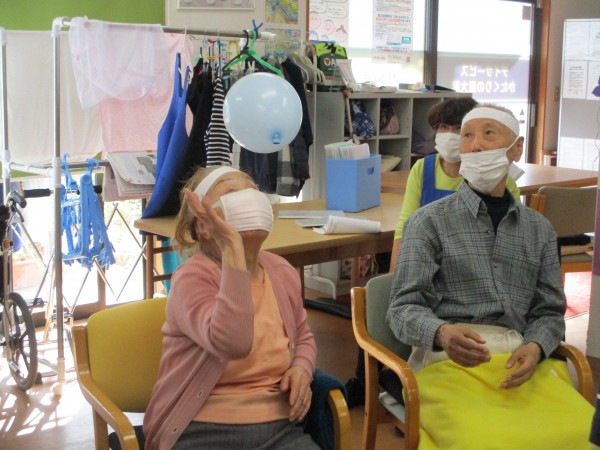 1種目目は「風船バレー」落とさずに何回続くかで勝敗が決まります。