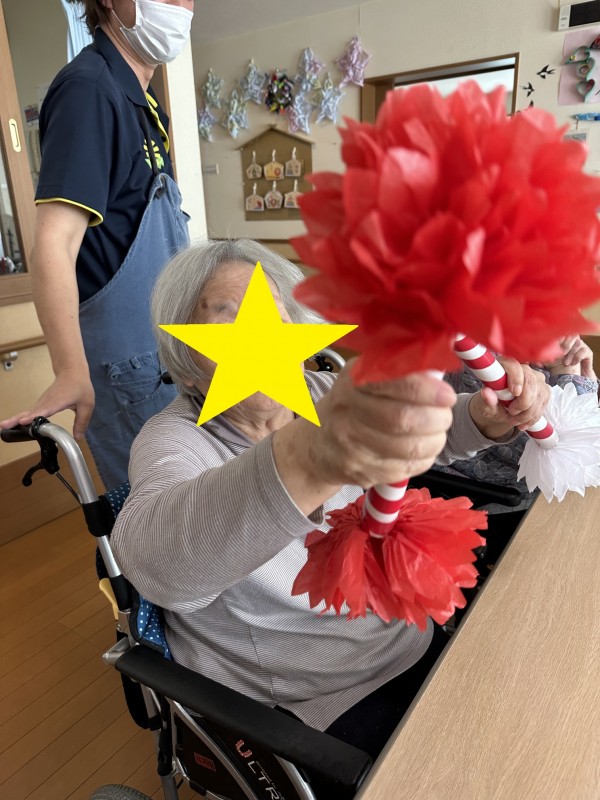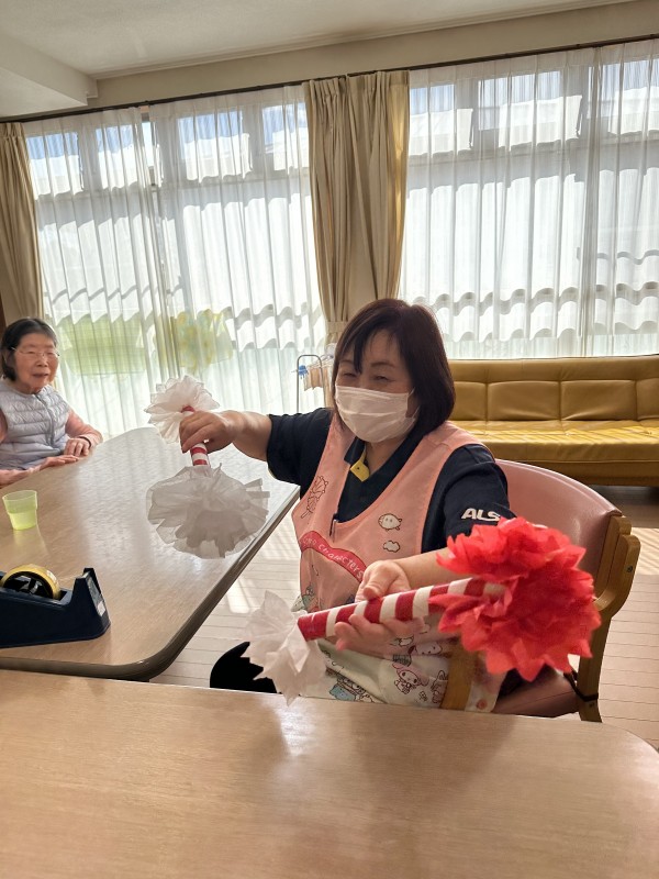 運動会前に手作り応援グッズで盛り上げてくれるケアマネージャー☆