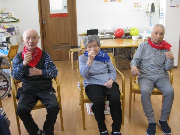 張り切って準備体操され筋肉をほぐされています(*^。^*) ニコニコされ頑張っています!(^^)! 声も出ていますね!!