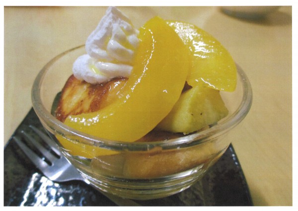 本日のおやつは、皆様お待ちかねの【センター長の手作りおやつ】です。今回のおやつは一口大に切った食パンのフレンチトーストと、ほくほくのサツマイモを一口大にして、メープルシロップバターソースで合えるというセンター長ならではのおやつ。トッピングに桃缶のスライスとホイップクリームを添えました。口の中でとろける美味しさ、最高です。今回も大好評でした♪