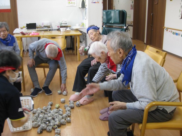 運動会の定番の玉入れです!(^^)! 音楽に合わせて籠に玉を入れていました! みなさま楽しまれていました(*^_^*)