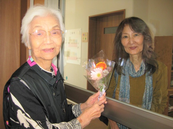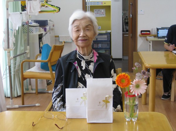 お花とお菓子をいただき感激されていました。 後で食べるのが楽しみですと話されました(*^。^*)