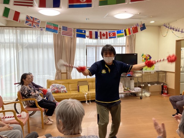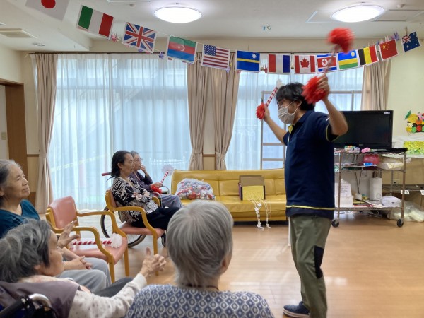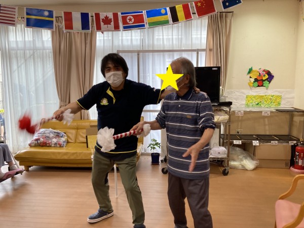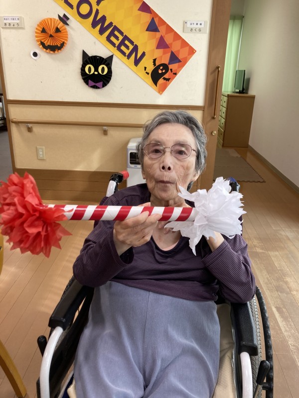 入居者様も応援グッズで応援!!