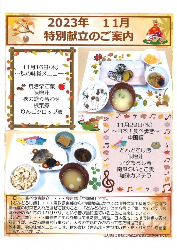 最後に来月の献立には特別メニューが2日間あります!16日と29日になります。もし食べたくなったらいつでも来てくださいね♪