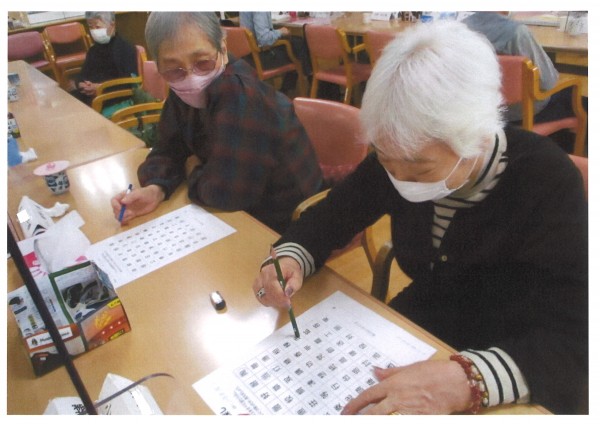 以前は塗り絵をしていた午前の時間に、脳トレをしてはどうかと始めた【脳トレチャレンジ】早くも一年半が経ちました。すっかり定着して今日は何やるの?なんて聞かれることも。チャレンジシートが9枚目の方もいらっしゃいます。無理はせず自分のペースで楽しみながら取り組むのが脳トレチャレンジ。時には難しい問題もあり、職員も一緒に学ばせていただいています。プリントだけではなくパズル等も各種あり、少しずつ数を増やしながら飽きずに取り組んでいただけるよう日々工夫しています。一緒にチャレンジしてみませんか?ご利用お待ちしております♪