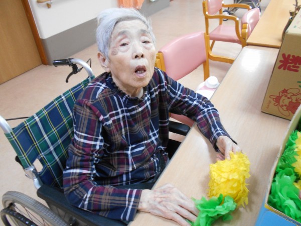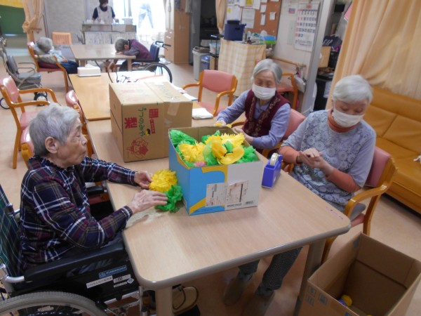 先日、ホームにて壁飾り作りを行いました。