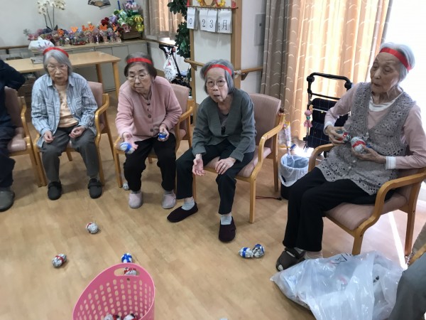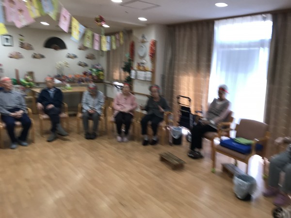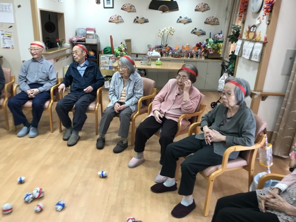 運動会と聞いて自信がなさそうなご利用者も居らっしゃいましたが、運動指導員の方が丁寧に説明してくださり、玉入れなどは各事業所の実況も入ってとても盛り上がりました♪あまりお疲れの方も見られず、ちょうどいい内容だったかと思います♪翌日にミュージックセラピーも行われ、季節の歌を皆様朗々と歌われました!
