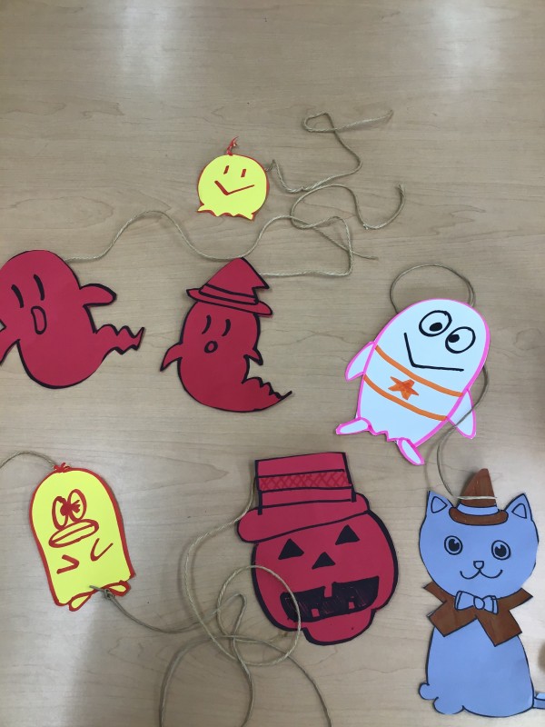 カボチャやオバケをせっせと作成♪( ´▽`)