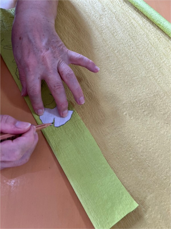 型紙から、チョキチョキと器用な指先でカットしていただきます。