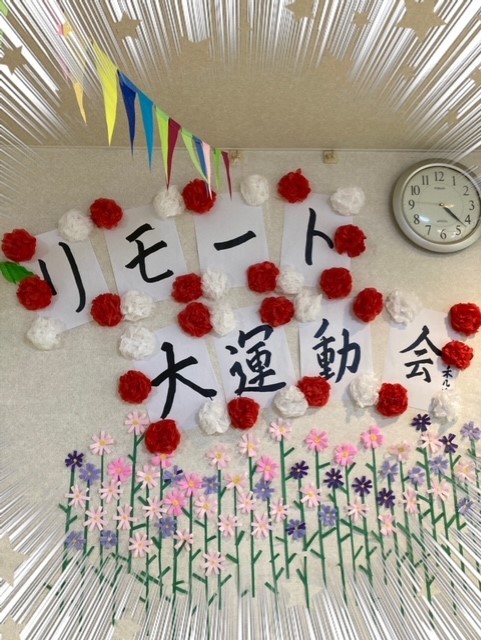 お花紙で紅白のお花を作りましたよ(*´ω`)