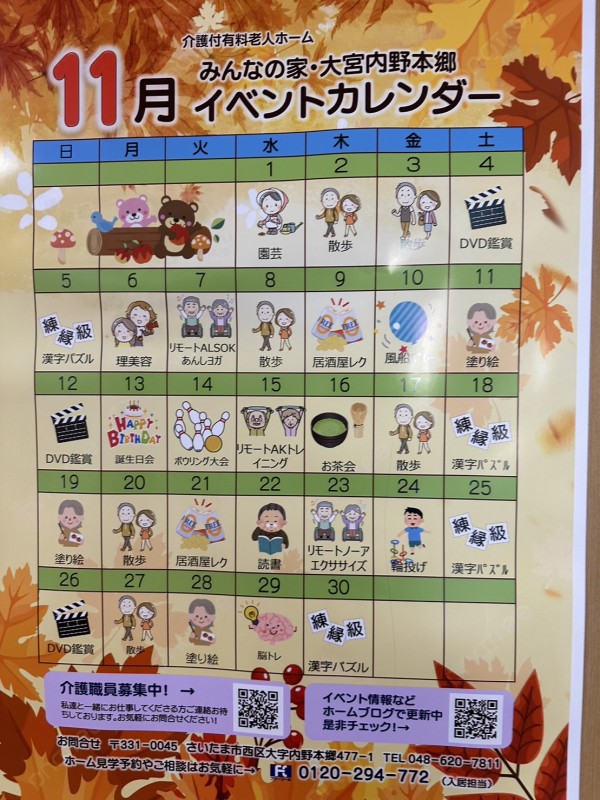 今月の『イベントカレンダー☆』を掲載させて頂きます。今月もご入居者様が明るい気持ちで過ごせますよう、スタッフ一同頑張ります(๑˃̵ᴗ˂̵)