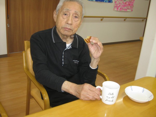 持って来られたお菓子を召し上がられています。美味しいです(*^_^*)とのことです!!