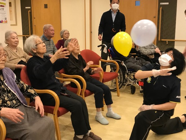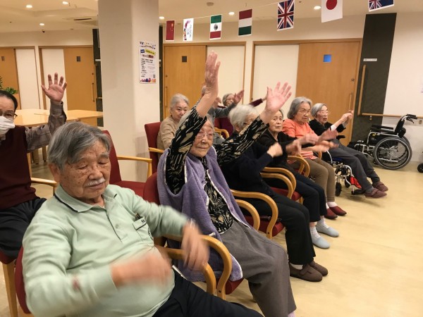 アミカの郷ちとせでは、毎週集団体操に参加され身体のリズムを整え、下肢筋力低下と健康に留意してきたかたばかり