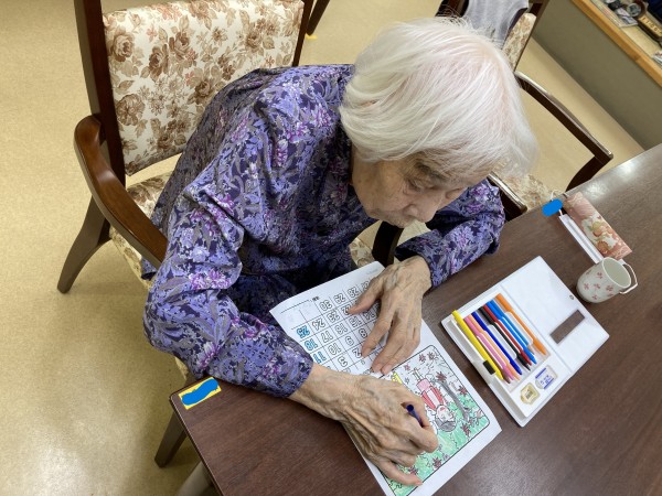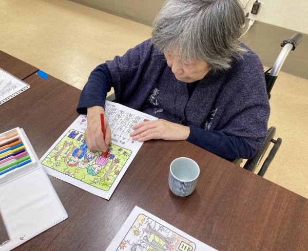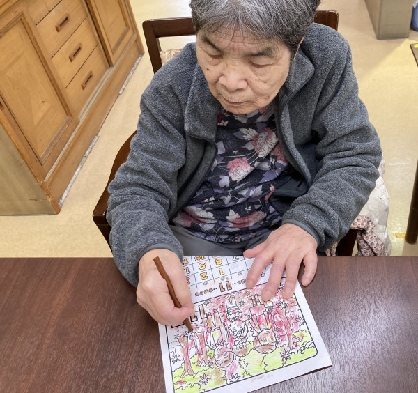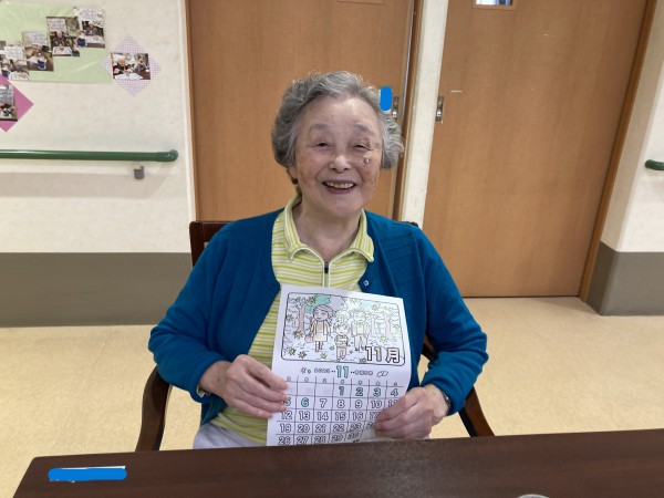 3階では11月のカレンダーのぬり絵を 数日かけて