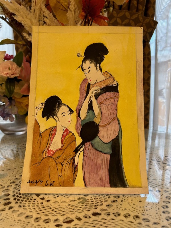 浮世絵の素晴らしい作品の数々に、ご入居者様の繊細なタッチと色彩で温かさを感じる新たな浮世絵の作品の数々でした。